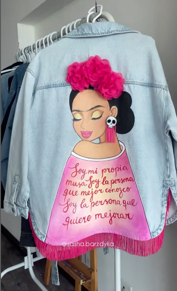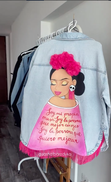 Opción #3: también nos puedes llevar una que tienes o la que desees comprar siempre y cuando sea apta para pintar. (te enviamos la lista de especificaciones vía Whatsapp) y este aprobada por el artista. Es recomendable que sea nueva o muy poco usada ya que el estado del textil influye a como se va absorbiendo la pintura. En este caso se restaran lo $50 del Valor de la obra ( que es el costo promedio que manejamos por chaqueta)