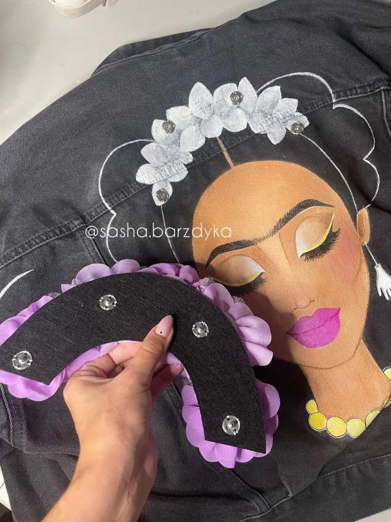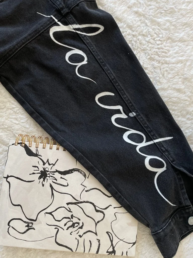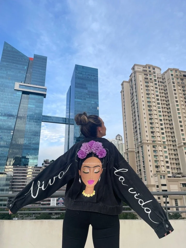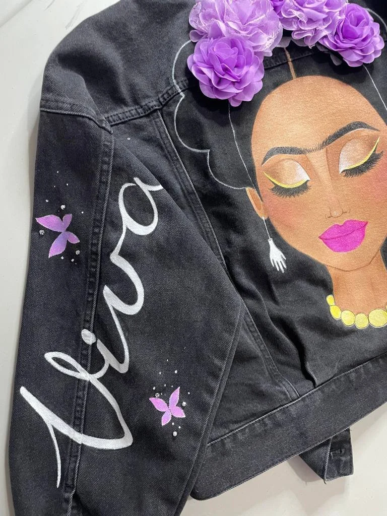 Opción #3: también nos puedes llevar una que tienes o la que desees comprar siempre y cuando sea apta para pintar. (te enviamos la lista de especificaciones vía Whatsapp) y este aprobada por el artista. Es recomendable que sea nueva o muy poco usada ya que el estado del textil influye a como se va absorbiendo la pintura. En este caso se restaran lo $50 del Valor de la obra ( que es el costo promedio que manejamos por chaqueta)